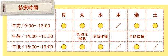 乳幼児健診…毎週火曜・金曜 14:00〜15:00
